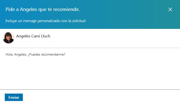 Por otra parte, tener recomendaciones sirve para que tu experiencia profesional esté validada por personas que han trabajado contigo. A la hora de pedir una recomendación a un contacto LinkedIn también puedes personalizarlas con un mensaje.