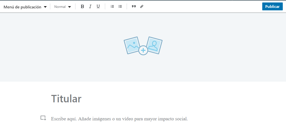 El editor de LinkedIn Pulse dispone de los principales elementos de cualquier editor de texto. Por ejemplo, con él puedes: